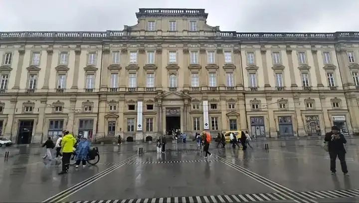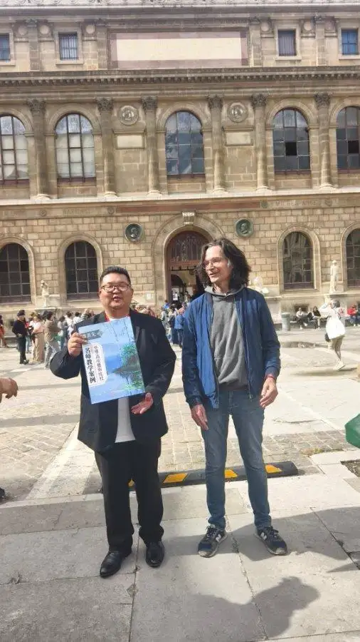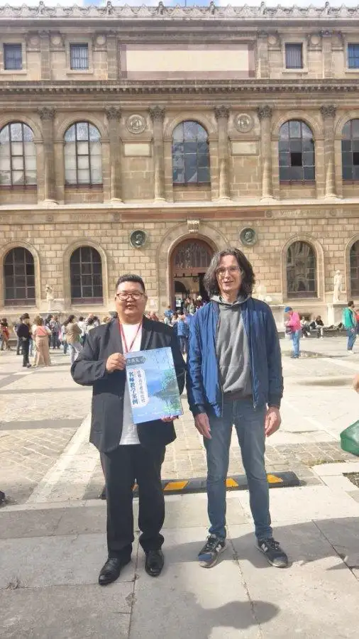 下午13:00巴黎国立高等美术学院绘画系主管、教授:阿梅尔·普拉达利尔女士(Ms. Armelle Pradalier)和绘画系教授:埃米尔·杰罗姆先生(Mr.Émile Gérôme ),在学院学习宫前方的广场上与中国艺术家代表团举行了艺术作品收藏仪式并合影留念,现场学院师生也纷纷驻足观看,共同见证这一难忘的时刻。
