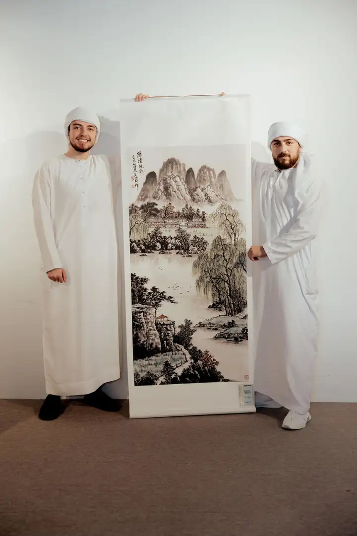 在阿联酋的展览现场,这幅作品打破了语言与地域的隔阂,让中东观众从笔墨间读懂中式田园的闲适之美,成为中阿文化交流的鲜活纽带。一笔水墨跨越山海,让丝路精神在传统山水艺术的传播中,焕发出新的时代光彩。