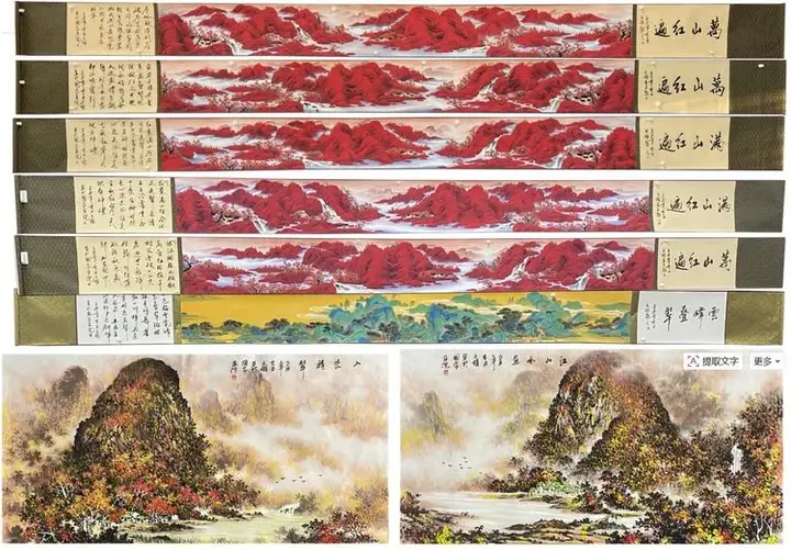 · 展出多幅融合唐宋笔意与现代色彩构成,展现“绿水青山就是金山银山”的生态哲思。