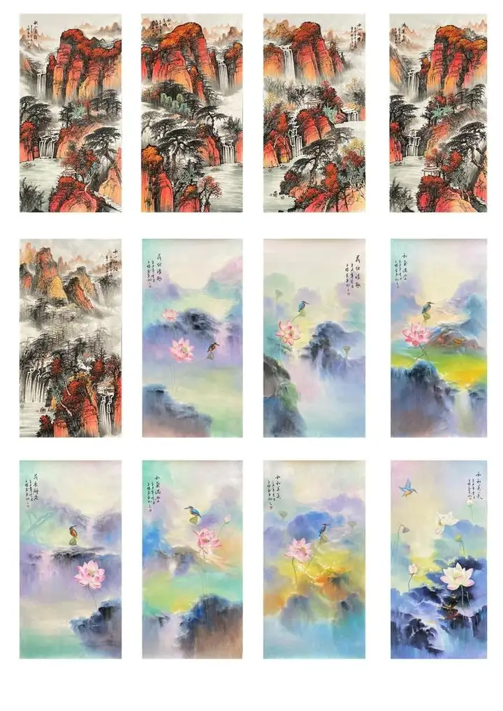 本次展出共计90余幅作品,是艺术家近几年的创作成果,涵盖焦墨、重彩和泥金等多种形式,展现了其艺术风格和技巧的探索。