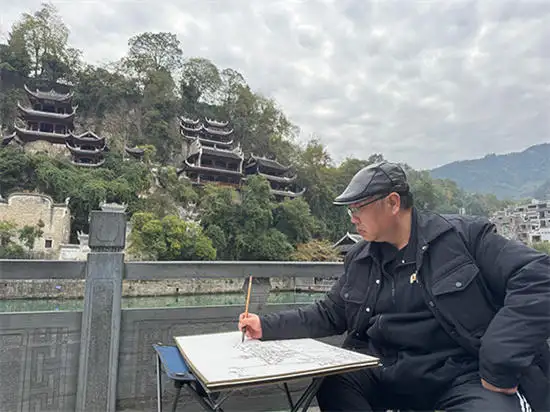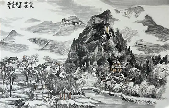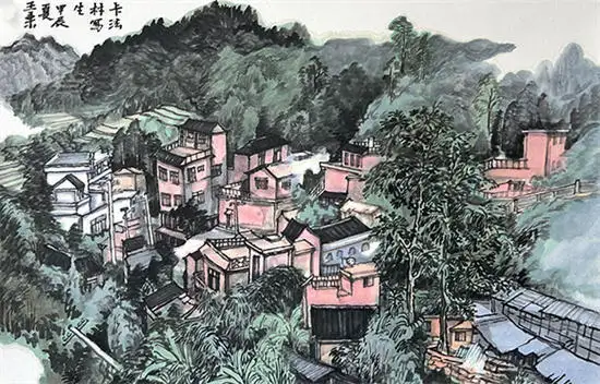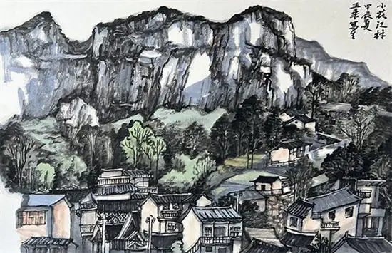 王乘的艺术实践,是一场与自然对话的永恒修行。他每年春秋两季必携学生深入黔地苗乡、太行绝壁、江南水巷,以千余幅写生作品为证,将“师法自然”推向极致。靖边丹霞的苍茫、六车河峡谷的奇崛、娘娘山湿地的温润,皆在其笔下化为墨色交响。他主张“写生是笔墨与自然的博弈”,拒绝程式化的摹写,而是以“诗情画意”重构山水意象,如《发哈村的清晨》中,水墨设色交融,晨曦与炊烟共舞,既见宋画的静谧,又显当代的鲜活。