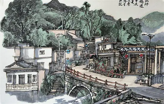 坛坪村红军桥写生,纸本,2024年,65x45cm