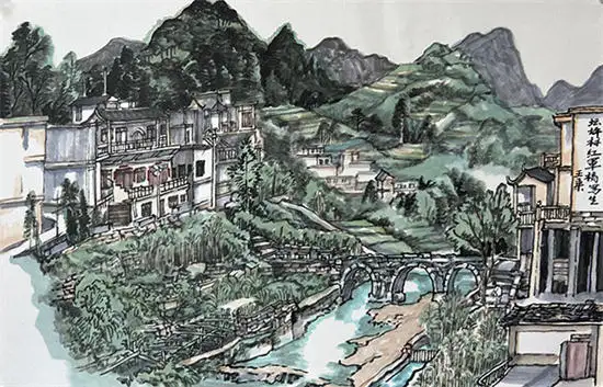 坛平村红色文化长廊,纸本,2024年,65x45cm