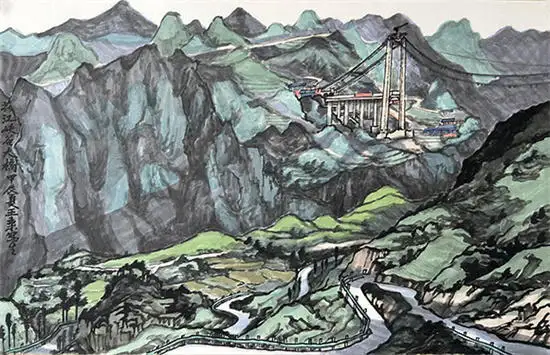 小花江铁索桥畔,纸本,2024年,65x45cm