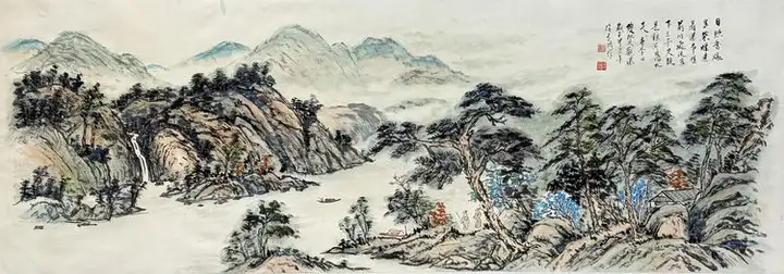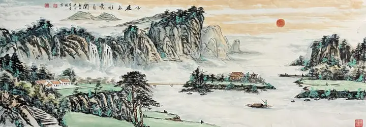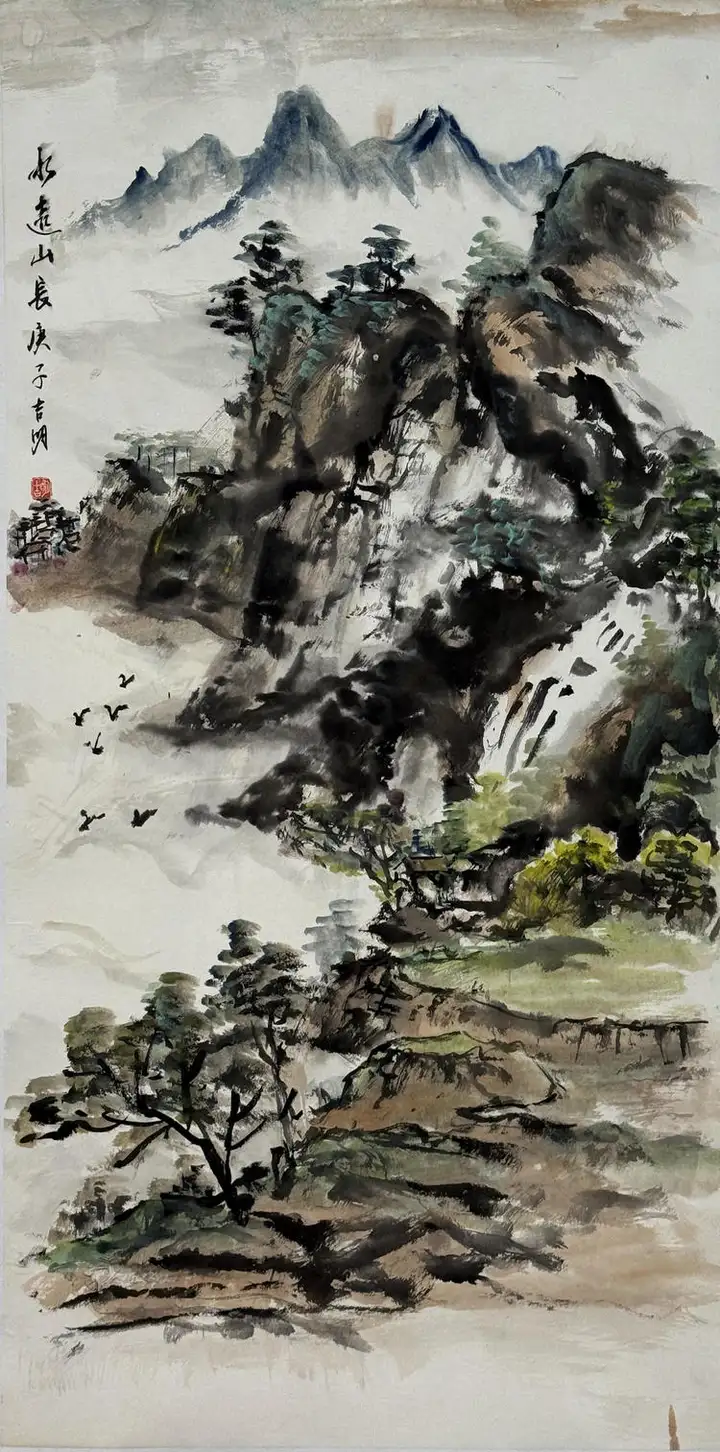 在山水创作中,他深得海派大师陆俨少笔墨意境之真传,笔法灵动、气韵悠远,画面意境开阔深远,形成山水与花鸟兼善、传统与时代相融的完整艺术面貌。