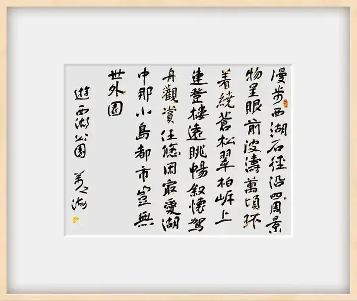 艺术风格:宗法“二王”与米芾,融合碑帖精髓,线条流畅灵动,结体宽博雅致,兼具文人书卷气与时代创新精神。擅长将诗词楹联与书法结合,作品题材多取自古典文学与自然风光,用笔凝练含蓄,墨色层次丰富。