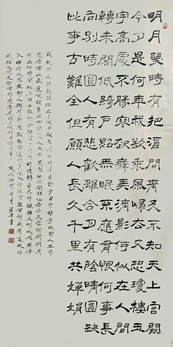 隶书见长:融合汉隶清雅与沉雄,笔法柔韧方圆,墨法润燥相生,形成独特个人风格。