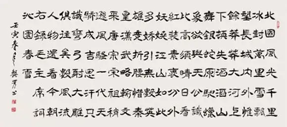 她的笔墨里,既有《云想衣裳花想容》的温婉诗意,亦有《大道同行》的豪迈格局,在清雅与沉雄的平衡中,诠释着“书如其人”的创作内核。这种对传统的敬畏与对创新的探索,让她的作品既经得起学术的推敲,又能打动普通观者的心灵,成为连接古典与当代的文化纽带。