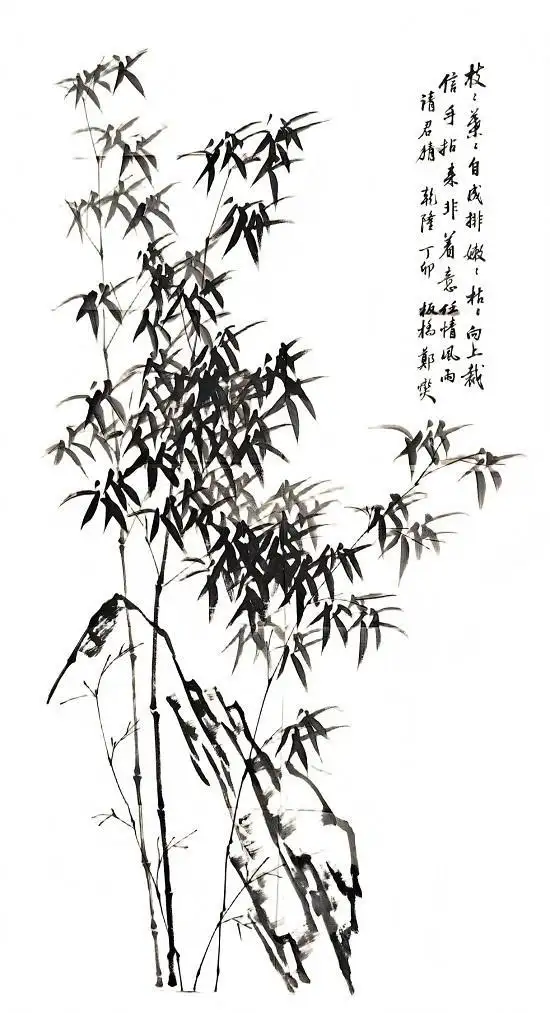 ◦ 采用“截枝式”构图,只取竹之上半部分,留白空灵,营造出“凌云之志”的高远意境;