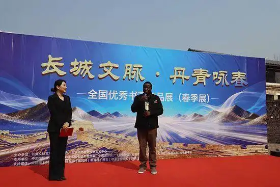 开幕式上,津巴布韦共和国驻华使馆经济公使格拉西亚诺·尼亚古斯先生发表致辞。他表示,中国书画艺术独特而富有魅力,是增进各国人民相互理解的重要桥梁。此次展览让他直观感受到长城所象征的坚韧精神与中华文化的博大精深,是一次难忘的艺术体验。他期待未来两国在人文艺术领域开展更丰富的交流。乌干达驻华使馆代表陆义先生也对展览的成功举办表示祝贺,并表达了进一步了解中国文化、促进友好往来的愿望。