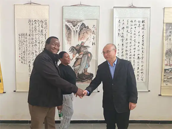 开幕式上,津巴布韦共和国驻华使馆经济公使格拉西亚诺·尼亚古斯先生发表致辞。他表示,中国书画艺术独特而富有魅力,是增进各国人民相互理解的重要桥梁。此次展览让他直观感受到长城所象征的坚韧精神与中华文化的博大精深,是一次难忘的艺术体验。他期待未来两国在人文艺术领域开展更丰富的交流。乌干达驻华使馆代表陆义先生也对展览的成功举办表示祝贺,并表达了进一步了解中国文化、促进友好往来的愿望。