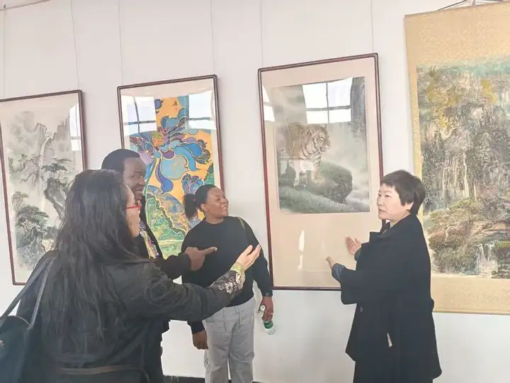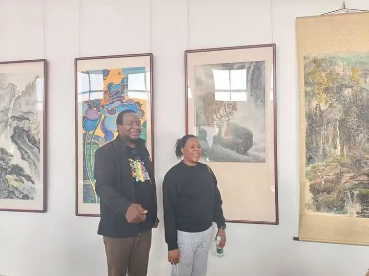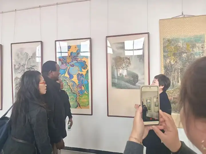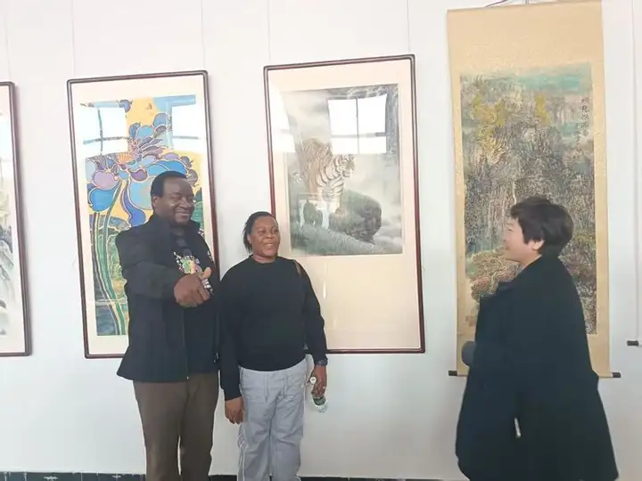 开幕式上,津巴布韦共和国驻华使馆经济公使格拉西亚诺·尼亚古斯先生发表致辞。他表示,中国书画艺术独特而富有魅力,是增进各国人民相互理解的重要桥梁。此次展览让他直观感受到长城所象征的坚韧精神与中华文化的博大精深,是一次难忘的艺术体验。他期待未来两国在人文艺术领域开展更丰富的交流。乌干达驻华使馆代表陆义先生也对展览的成功举办表示祝贺,并表达了进一步了解中国文化、促进友好往来的愿望。