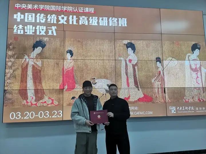 2026年3月23日,中国传统文化高级研修班——中央美术学院国际学院认证课程结班仪式顺利举行,标志着本次为期一段时间的传统文化沉浸式研修之旅圆满落幕。来自各行各业的传统文化爱好者、艺术从业者齐聚中央美术学院,在系统的学术滋养与技法锤炼中,深耕中华优秀传统文化沃土,圆满完成全部研修任务,顺利获得中央美术学院国际学院官方认证证书,携满满收获奔赴文化传承新征程。