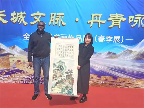 2026年3月28日,“长城文脉·丹青咏春——全国优秀书画作品展(春季展)”在北京市怀柔区隆重启幕。本次展览共汇集了来自全国数十位艺术家的百余幅精品力作,涵盖书法、国画、油画等多种形式。活动特邀津巴布韦共和国驻华使馆经济公使Mr Grasiano Nyaguse(格拉西亚诺·尼亚古斯)及夫人、乌干达共和国驻华使馆代表Mr. Louis(路易斯·伊德亨)、尼日利亚共和国驻华使馆代表(陆义)等多国驻华使节以及国内书画界著名艺术家、评论家齐聚一堂,共同见证这一文化盛事。展览旨在以书画艺术为纽带,深入诠释长城文化的精神内涵,搭建中外文明对话的平台,礼赞时代新春,推动文化交流与人文共融。