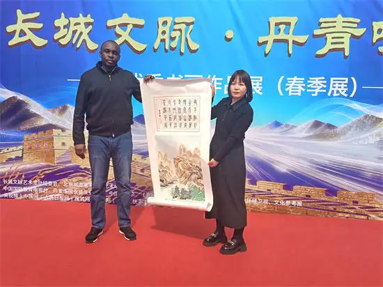 开幕式上,津巴布韦共和国驻华使馆经济公使格拉西亚诺·尼亚古斯先生发表致辞。他表示,中国书画艺术独特而富有魅力,是增进各国人民相互理解的重要桥梁。此次展览让他直观感受到长城所象征的坚韧精神与中华文化的博大精深,是一次难忘的艺术体验。他期待未来两国在人文艺术领域开展更丰富的交流。乌干达驻华使馆代表陆义先生也对展览的成功举办表示祝贺,并表达了进一步了解中国文化、促进友好往来的愿望。