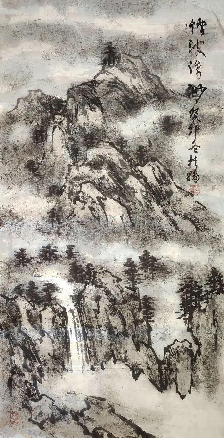 在中国画的发展历史中,笔墨不仅是造型的工具,更是艺术家精神情感的载体与艺术个性的体现,单桂福先生在深耕传统的基础上,以大胆的实验精神,对中国画的笔墨语言进行了突破性探索,形成了独具特色的艺术风格——以草书笔意入画,融中西艺术之长,实现了笔墨语言的时代性转化。草书笔意入画是先生笔墨革新的核心。他深谙“书画同源”,自幼勤练草书,研习张旭、怀素等大家,将草书灵动奔放、刚柔相济的笔法融入绘画。其笔下花枝笔势遒劲,禽鸟笔简意赅,线条兼具造型与抒情功能,赋予画面强烈书写性与节奏感,形成“力透纸背”的艺术张力。如他画的麻雀,以迅疾草书线条勾勒,淡墨点染,寥寥数笔便尽显灵动。先生勇于突破传统水墨程式,在笔墨、用水、用色上大胆探索。他灵活运用“五笔七墨”,交替使用多种笔法;巧用“泼墨”“积墨”等技法,实现“墨分五色”;坚持“以色助墨”,色彩清雅,偶尔融入西画颜色。如《雨中情》中,淡墨泼洒表现雨雾,浓墨勾勒花鸟,墨色层次丰富,意境悠远。这种探索是对传统的拓展,丰富了水墨表现语言。融中西艺术之长是先生创新的另一维度。他以开放心态吸收西画光影、透视技法,却坚守中国画“写意”核心。人物画中,他兼顾形态精准与神似表达;山水画中,融合西画色彩与传统笔墨。如山水画中《山水诗情》借鉴西画光影,以传统笔墨表现山石质感,中西技法和谐共生,实现创造性转化。先生的笔墨革新,是对中国画“笔墨精神”的当代诠释。他以草书笔意为骨、水墨技法为肌、中西融合为翼,构建的笔墨语言体系,既传文化基因,又应时代需求。