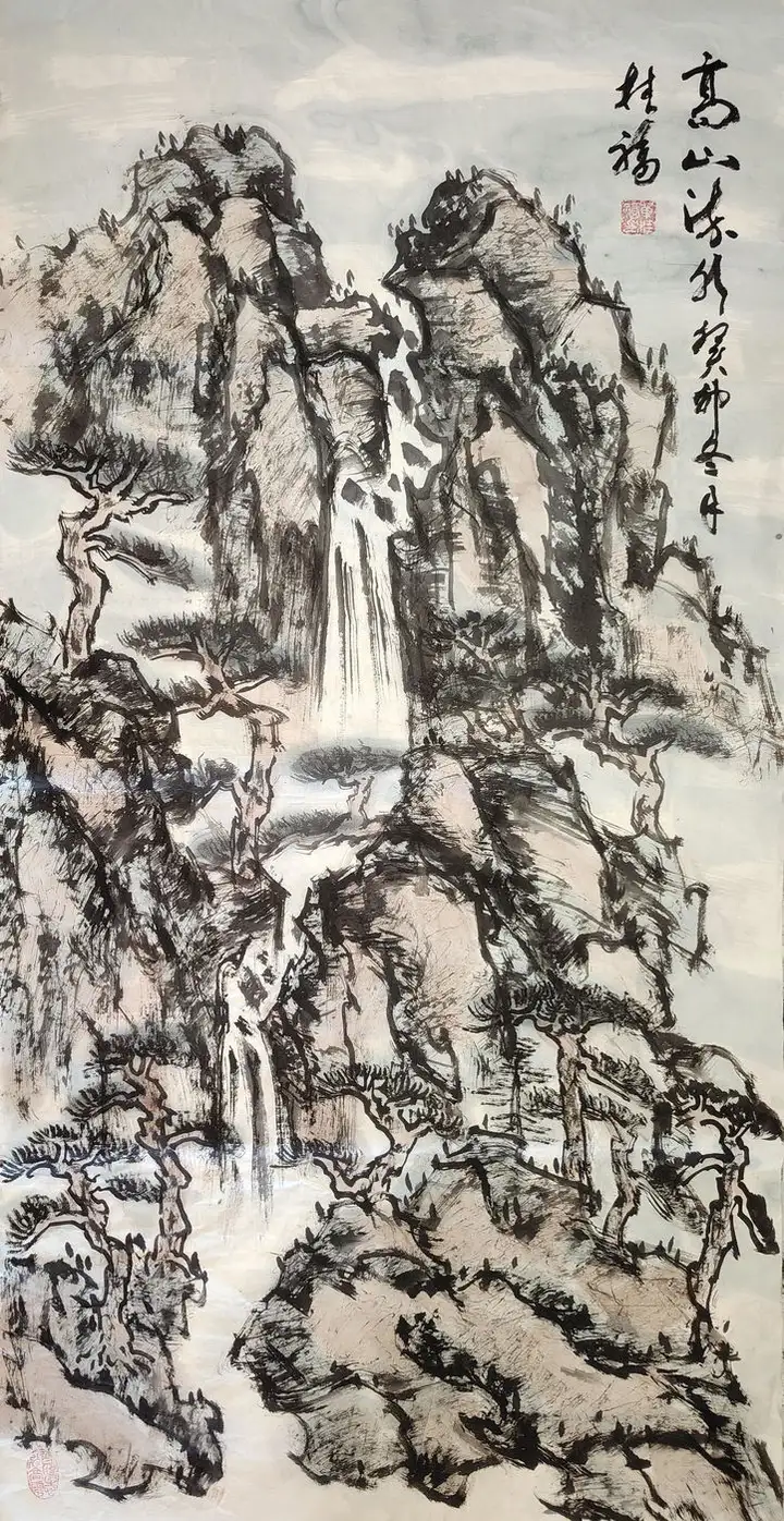 任何一位伟大艺术家的成长,都离不开地域文化的浸润与师门传承的启迪。单桂福先生的艺术根基,深植于齐鲁文化的沃土之中,又得益于名师的悉心点拨,形成了“承传统之韵,汲自然之灵”的艺术起点。山东作为孔孟之乡,文脉千年不绝。乳山山海相拥的地理环境,孕育了坚韧灵动的地域品格,潜移默化融入单桂福先生的艺术底色。先生自幼喜爱观察自然,稍长后博览典籍,积淀深厚人文素养,这使其作品兼具视觉美感与文化内涵。他在《略论中国画与诗词、音乐、戏曲的关系》中阐释,中国画与传统文艺一脉相承,皆求“意境”与“气韵”,这种认知正是源于其扎实的文史功底。名师引路至关重要。画风兼具传统笔墨与写实精神,强调“画者画心”,主张笔墨需注入真情。这一理念深刻影响了先生,使其树立“师古不泥古”的追求。在师门期间,先生系统临摹历代名家名作,钻研笔墨精髓与构图章法,熟练掌握笔墨的提按转折、浓淡干湿,为日后创新奠定了坚实基础。除师门传承外,先生深耕传统绘画理论,从顾恺之“以形写神”到黄宾虹“五笔七墨”,皆有深入研读。他在《谈中国画的传统与发展》中提出,传统是中国画根脉,脱离传统的创新终将枯竭;同时传统需与时俱进,并非僵化教条。这种辩证认知,让其创作在传统与现代间找到平衡,兼具本质特征与时代气息。地域文化、师门传承与理论研究相互交融,构筑了先生艺术创作的根基。深厚的传承积淀,使其创新有本可依,在当代画坛潮流中始终保持清醒与坚定。