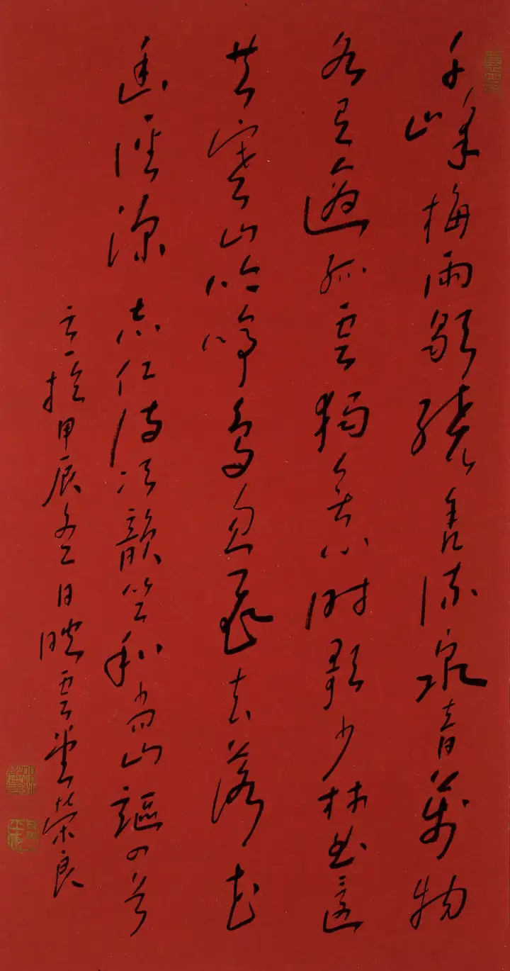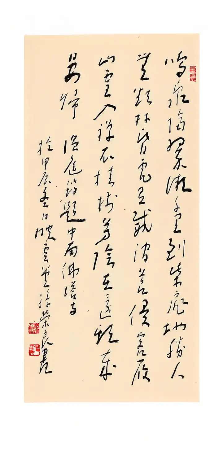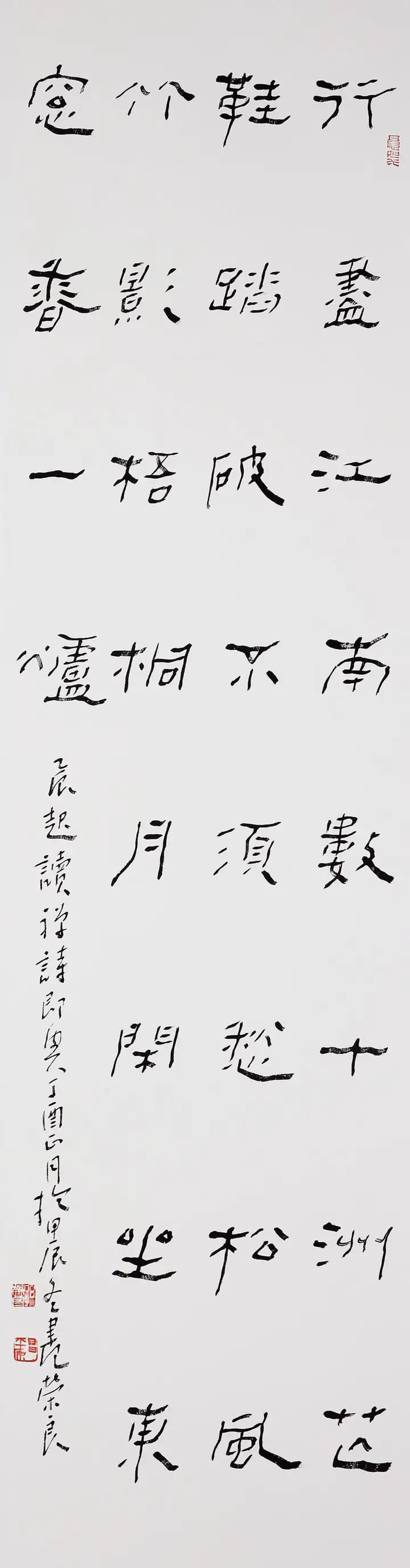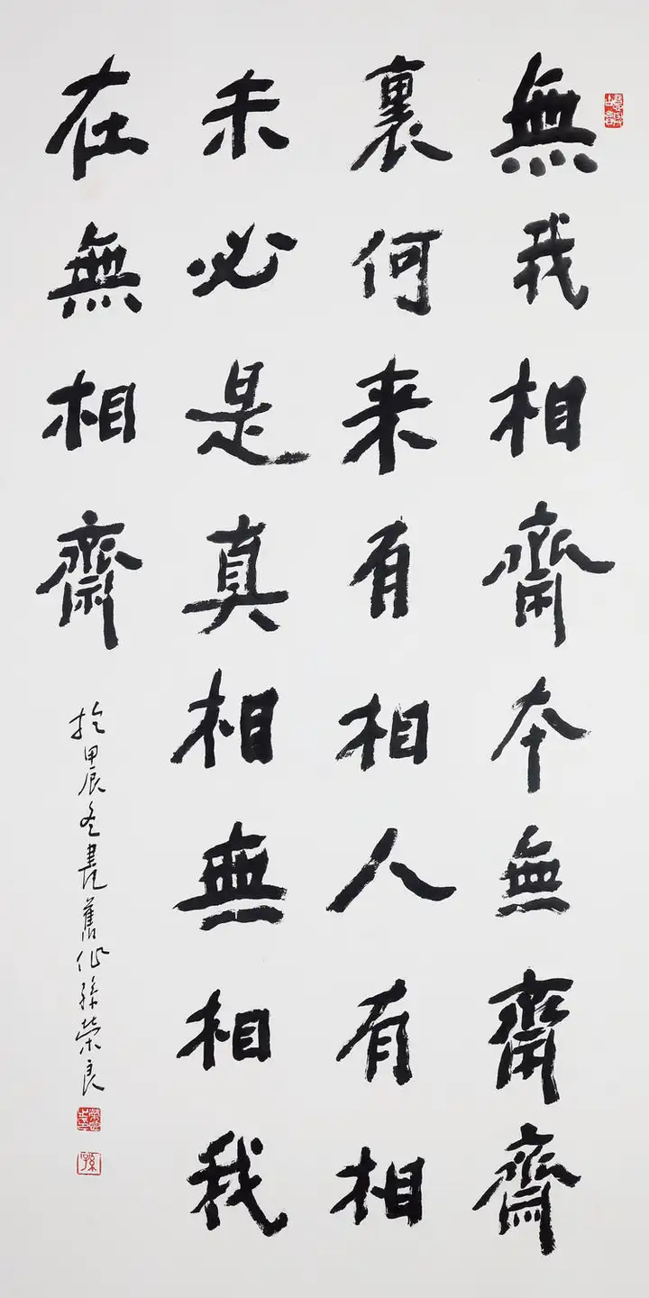 孙荣良先生字沉稳厚重,一收一放、一轻一重,形成了完美的视觉平衡。左侧落款小字灵动秀逸,与主体大字形成大小、粗细的对比,印章的钤印位置精准,让整幅作品气韵贯通、浑然一体,“长寿”的祈福寓意也通过厚重的笔墨传递得淋漓尽致。