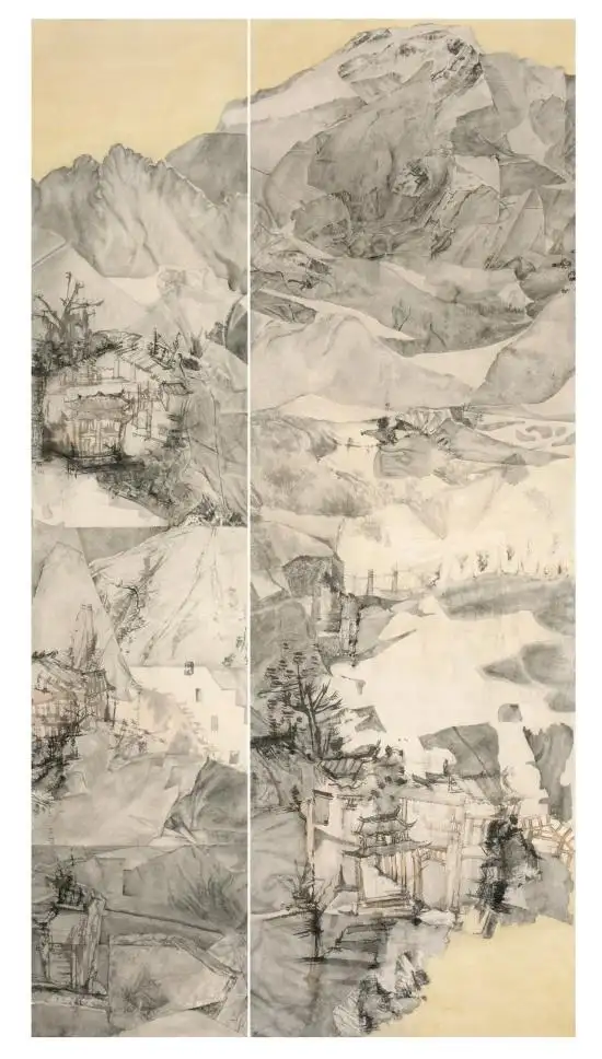 王贞的写意山水,是其艺术理念的集中体现。她擅长以淡墨渲染与焦墨线条相结合的手法,营造出朦胧空灵、清逸俊朗的意境,既保留了传统山水的气韵生动,又融入了现代构成的视觉张力。