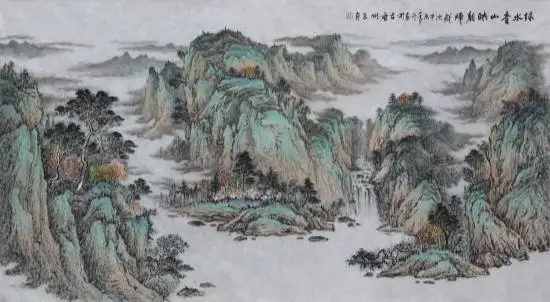 《绿水青山映朝晖》 248cmx129cm