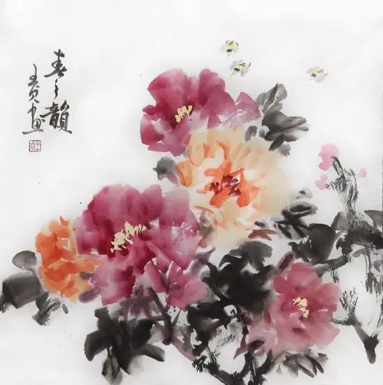 作为菏泽籍艺术家,牡丹是王贞花鸟创作的核心题材,也是其情感与艺术理念的集中表达。不同于传统牡丹画“雍容华贵、大红大紫”的单一审美倾向,王贞笔下的牡丹,兼具典雅与灵动,兼具写意性与装饰美,展现出牡丹的多元风骨。