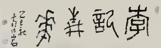 南先生的书法金石气主要来自他在德州平原师范十二年的讲学生涯,当时画画很少,主要是练字读书。在那时,学校里有图书馆,他品读了大量的名帖、巨典,如《石门颂》、《礼器碑》、《石门铭》、《龙门二十品》、《中岳嵩高灵庙碑》、《爨宝子》、《爨龙颜》等,尤其是研习汉隶和北碑之后,书法的表现迥然不同,就有了力透纸背之感。形式美,来自南先生绘画艺术的审美,书法艺术的审美和画画同义,如这一点放在这很美,或撤长一些很美,这个字大一些、那个字小一些,这个字结构松一些、那个字结构紧一些等等,都可体现书法的形式美,形式美是书者心性的表现,是对中国曲线美的畅言,是对自然美的讴歌。穿透力是摄人魂魄之意,是精神世界的升华,让读者寻味、联想“海岩先生的书法,细味之后会让人浮想联翩,尤其是他的书法个体笔画,细品味后一会儿看像枯木,一会儿看像龙骨,一会儿如高山坠石,一会儿像众人拔钉,如万将出寨,像万帆过江,似高山流水,喻鱼跃鸢飞……尽显其万语千言,这才是艺术,真正的书法艺术,具有言无不尽的内涵美,又有荡气回肠的现代感。