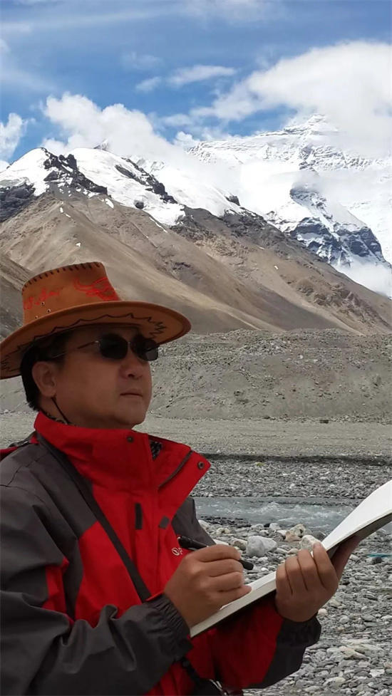 利军的内在是纯素的优雅:初见其面,其人文质彬彬,如谦谦君子之沐和煦春风;又见其面,其人涵养深深,如贤贤君子之敞坦荡胸怀;再见其面,其人纯素真真,如乾乾君子之求返朴归真。利军的谦和是天生的,是发自内心的。内心的谦和流露于绘画,就是广学、博览、写生。在他的心中,不仅有“三人行必有我师”的谦逊,而且有“择其善者而从之”的辨断:他尊敬当代人,故在交往中别人亦敬之,会以真学相授,所以他会在与朋友的切磋中获得真知灼见;他尊敬前人,故在博览先贤之萃华时能如饥似渴,所以他从前辈的积淀中汲取了无尽的营养;他尊敬自然,自然之理处处相通,所以他从自然中感悟到了人生与绘画的真谛;他尊敬描绘的对象,注重走进生活和亲身感受,在写生中体会那些动人的画面。利军的贤才与坦荡的胸怀是修养的结果,他通过“敬人”的谦和达到了“净己”的状态。多年来,他经常策杖于山林,扁舟于江湖,深入于生活,感受自然、风情与人物,在完善了绘画技巧的同时,也积累了大量的绘画素材和认识,更提高了自己的修养。利军有个习惯,他常常把自己的感悟、别人的经典记录下来,闲暇时便翻一翻,看一看,或再读一读,再想一想,他的这个习惯保持了许多年,渐渐的,这些感悟在自己的内心积淀下来,如水之沉净,使自己的内心得到了净化。