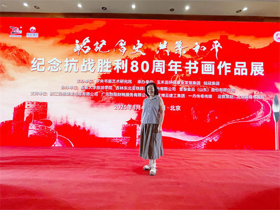 2025年8月4日应中央书画艺术研究院邀请青岛市美术家协会会员李静老师出席在北京饭店国际会展中心举行的《“铭记历史,共筑和平”一一纪念抗战胜利80周年书画展》开幕式。