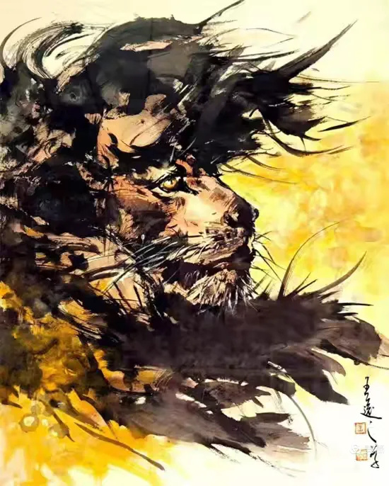 二、气势逼人。中国书法中草书尤其是狂草营造的就是一种气势之美,其大开大合、跌宕起伏的线条和章法让人感受到险绝之美。王远之也把这种感觉用到了国画中,在他的作品中很少有四平八稳的东西,在构图上都是别出心裁,制造奇绝的画面,把气势拉满,具有很强的视觉冲击力。