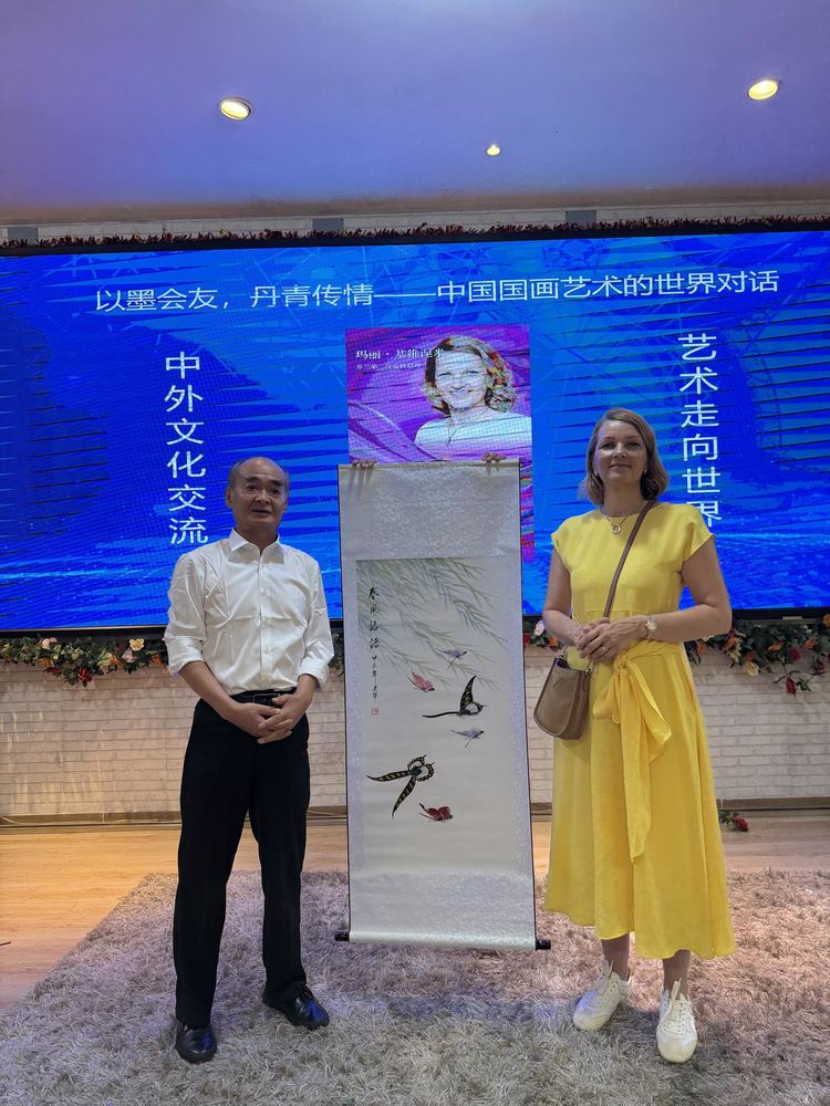 【中国深圳,2025年8月9日】第七届"推动双循环品牌走向国际"系列活动重要环节——芬兰总理玛丽·基维涅米欢迎晚宴在中国深圳私人博物馆举办。中国当代画家魏建军作为中国艺术家代表出席盛会,展开了主题为《以墨会友,丹青传情——中国国画艺术的世界对话》艺术交流。中国传统书画艺术为媒,促进中芬文化交流与经贸合作。