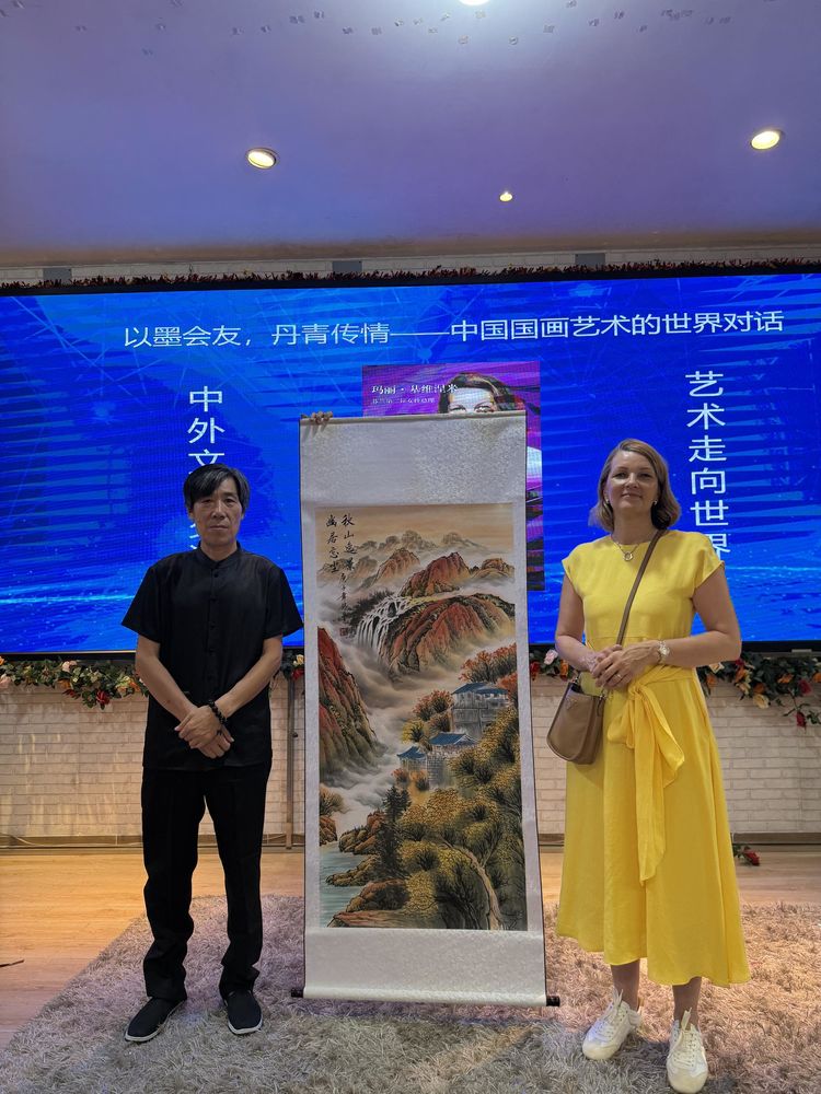 【中国深圳,2025年8月9日】第七届"推动双循环品牌走向国际"系列活动重要环节——芬兰总理玛丽·基维涅米欢迎晚宴在中国深圳私人博物馆举办。中国当代画家郝银平作为中国艺术家代表出席盛会,展开了主题为《以墨会友,丹青传情——中国国画艺术的世界对话》艺术交流。中国传统书画艺术为媒,促进中芬文化交流与经贸合作。