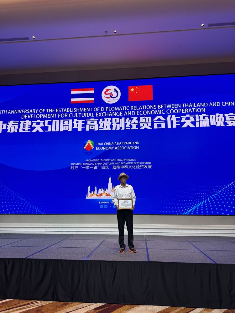 2025年鸿鹄艺术馆冯馆长带领其艺术馆里二十多名艺术家受邀参加了此次中泰建交50周年高级交流晚宴活动,著名书法家冯定坤老师也参加了这次交流晚宴,并与泰国政要及素博·巴莫亲王现场合影,作品被其亲王收藏。