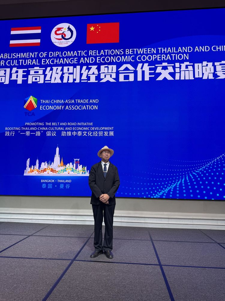 2025年鸿鹄艺术馆冯馆长带领其艺术馆里二十多名艺术家受邀参加了此次中泰建交50周年高级交流晚宴活动,著名画家王连启老师也参加了这次交流晚宴,并与泰国政要及素博·巴莫亲王现场合影,作品被其亲王收藏。