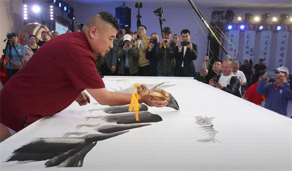 当河北省会石家庄的活动现场灯光聚焦,数万观众屏息凝视,何江熊手握特制巨笔,俯身于铺展的宣纸之上——这场注定载入艺术史册的创作,即将开启。谁能想到,仅需10分钟,一只体长3.5米的水墨大虾便破纸而出,不仅以“世界最大单幅水墨虾”的姿态斩获吉尼斯纪录认证,更以“《顺天下》”为名,将井陉的艺术魂脉与东方哲学,深深烙印在世界的视野里。