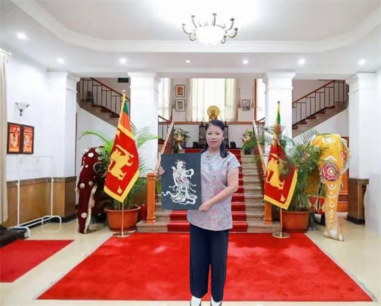 展览期间,主办方还特别设置了"中斯艺术家对话"环节。贾桂芹老师与斯里兰卡艺术家就传统艺术的当代创新进行了深入交流。