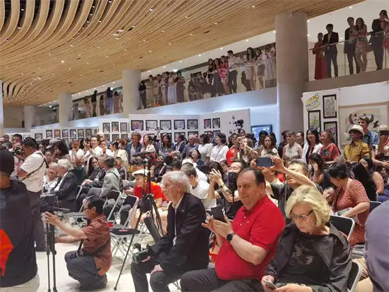 开幕式现场,联合国教科文组织协会世界联合会代表罗伯特·福帕(Robert FOPA)、中国驻法国大使卢沙野、法国最高荣誉骑士勋章获得者、作家、翻译家、法中交流促进会主席亚丁、国际旅游联合会主席让-埃里克·德·圣卢克(Jean-Éric de Saint Luc) 中国艺术家代表王兆爱老师,等上千位国际政界、商界、文化艺术界、科技界、娱乐界等不同领域的嘉宾出席活动,共同见证了这一重要时刻,参与进这场神奇的艺术盛宴。