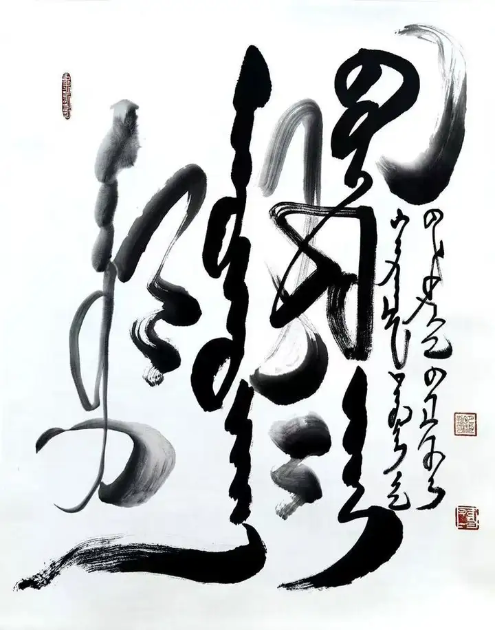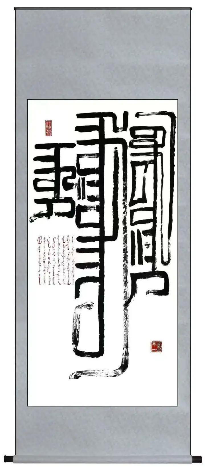 巴·敖日格勒的两幅蒙古文书法作品(尺寸60×90cm和68×138cm)在2024年9月5-7日香港金秋当代艺术拍卖会上成交价位48000元和66000元整。这是把蒙古文书法推上了市场经济平台的证据。