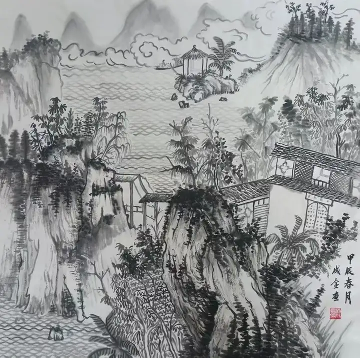 洪成金,号钱塘居客,风荷斋主人,字风荷,室名风荷斋。1972年3月生,浙江省瑞安市飞云镇人,自幼喜好画画,现师承著名画家孙正馨先生,作品有传统功底。现为:杭州市高新开发区(滨江)美术家协会会员、杭州江畔书画院会员,嘉兴菊乡画社社员,江畔印社社员。2020年进修中国美术学院山水画研修班。2017年11 月作品经评审入选由中国艺术大赛网举办的“中国第十一届国画书法大赛”,获得优秀作品奖。
